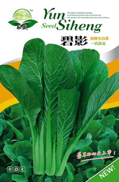 品种主要性状:新育成小白菜专用一代杂交种。生长速度快,生长势强,温度适宜18-20天即可采收上市。株形美观,叶面平、无毛,叶缘无波,叶色鲜绿亮泽,叶柄翠绿、宽厚;商品性状好,整个生长期均可食用。适应性广,抗逆性、抗病性强,产量高,整齐度好,可一次性全部采收。风味及食用品质极佳,是蔬菜基地专用品种。