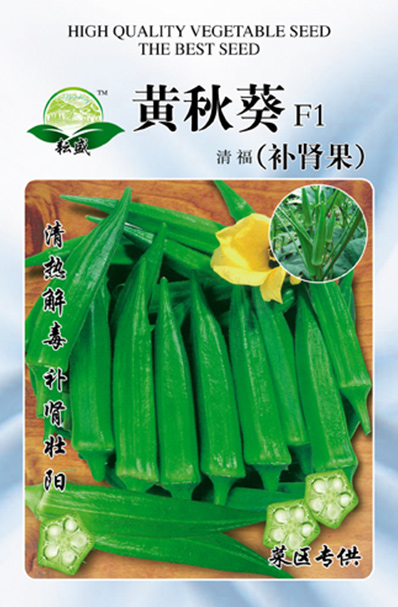 株高150cm左右,茎绿色。叶互生,掌状五裂,有硬毛,叶柄长。花大黄色,着生在主枝各叶 ,自上而下开放。果实细长深绿色,不宜褪色,目前是菜区首选品种,横断面五角或六角,食用嫩果,肉质柔嫩,润滑,风味独特,营养价值高,堪比人参(在日韩即称为绿色人参),对糖尿病及各种癌症有预防和治疗作用,如了解更多药用价值请百度,可煮食、炒食、凉拌、做汤及速冻加工。